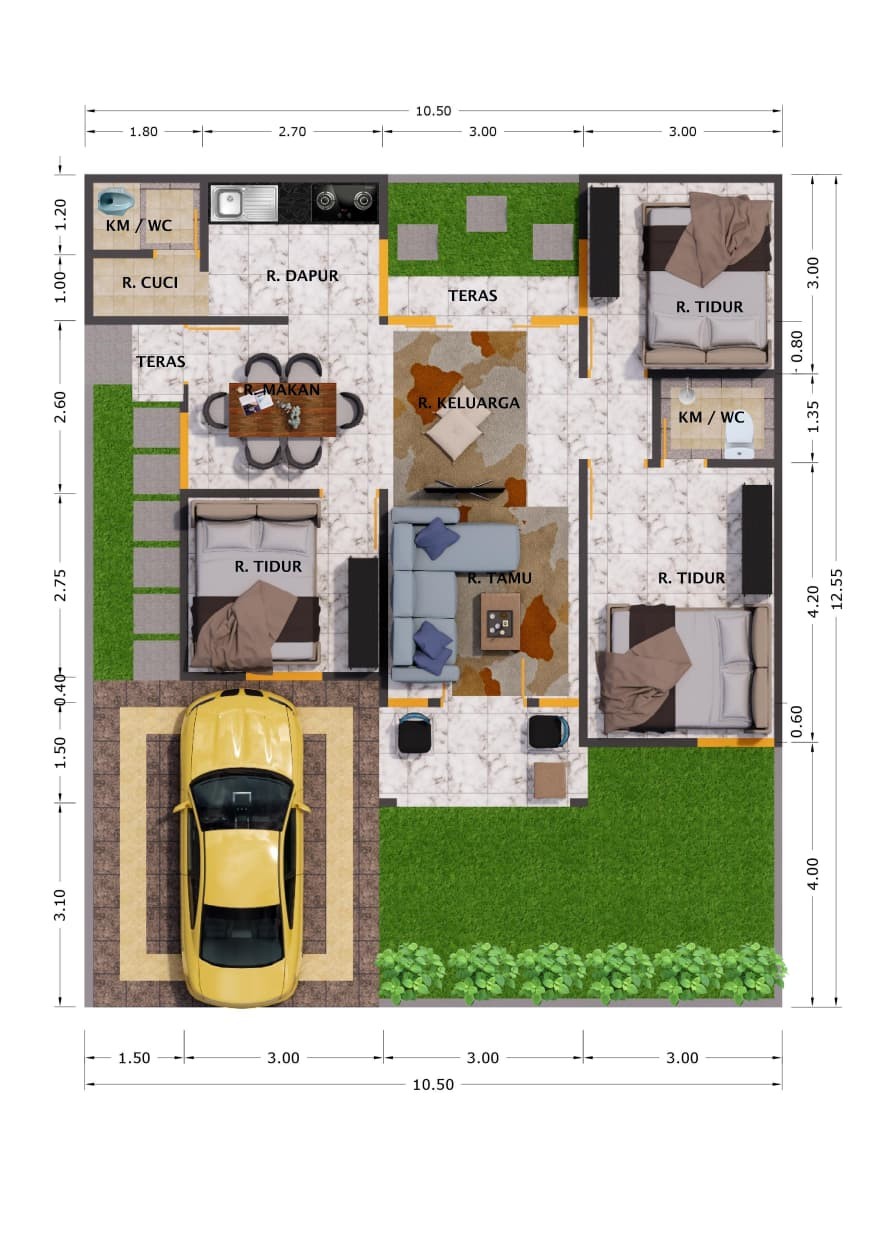 β‘3 Kamar Tidur β‘2 Kamar Mandi